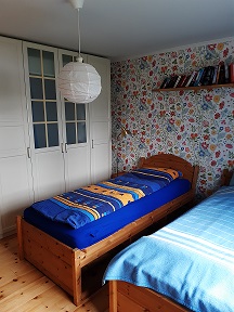 je zwei Einzelbetten. In einem der Schlafzimmer können die Betten